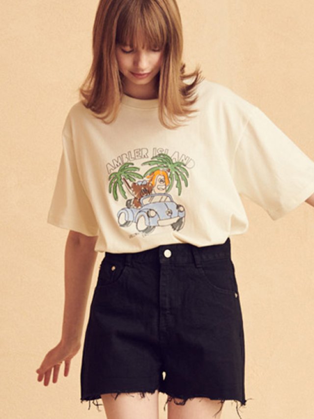Ambler Enjoy Drive 刺繡中性T恤 (淺藍/米白)