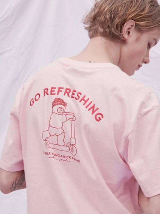 AMBLER-中性款粉紅色滑板車BEAR BEAR Tee