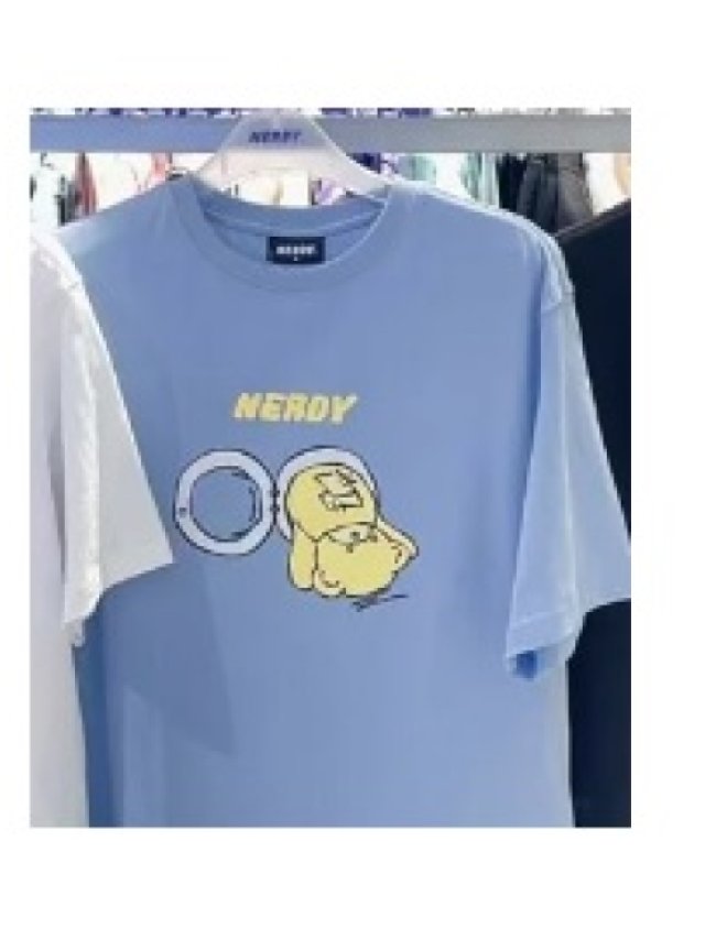 Nerdy 洗衣熊 天藍/白色 鬆身Tee