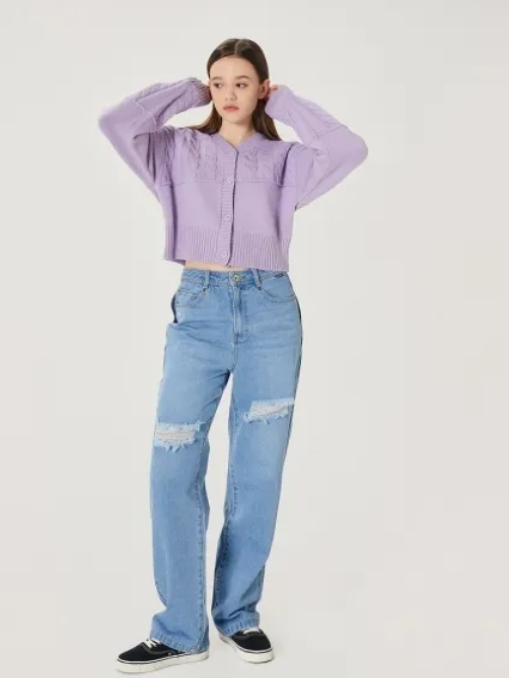 MARKM 女裝 粉紫 不規則針織短身外套